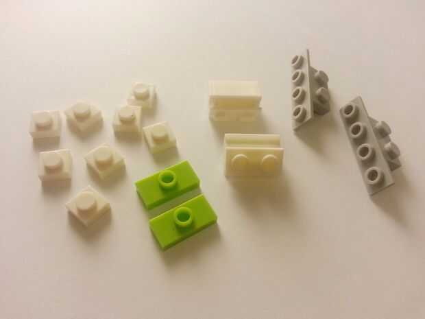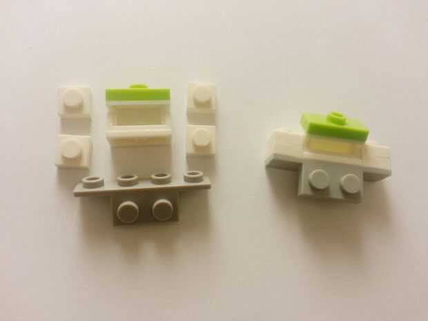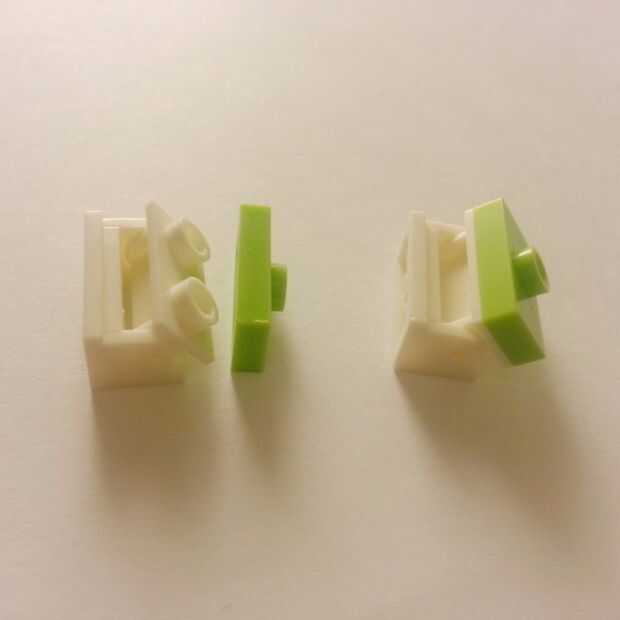 1. Coloque el bloque de Lego verde en la placa de bisagra blanco.