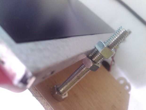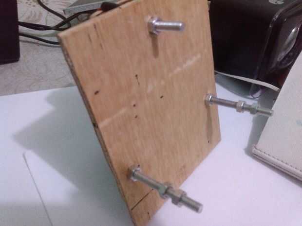 Como guía si usted sólo construirá su propio, aquí hay algunas imágenes que proporciona. He utilizado 5 pulgadas por 6 pulgadas y 1.5 pulgadas de madera contrachapada de 4 pulgadas. Taladré 3 agujeros a la más grande y 2 agujeros a la otra. Un montón de tuercas y tornillos que unen las dos piezas de madera juntos y sirve como soporte de la pantalla LCD (ver fotos arriba). Usted es libre de modificar o diseñar su propio stand, siempre y cuando mantenga la pantalla LCD, es bueno para ir.