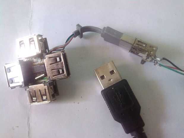 Tengo un hub USB por menos de $2 con 4 puertos. Por desgracia, tiene conector de cable corto así que necesito ampliar el cable para unir el eje fácilmente sin colgar todo esto al lado de la pantalla android. Miro para un conector usb macho extra de mi colección rescatado y acople un conector usb hembra que también fue rescatado. Después de la prueba, os adjunto el eje al soporte. Puede utilizar un hub como funcionan bien con tu android. El ratón y el teclado actúan como dispositivos de interfaz humana USB, PS/2 no funcionará. PS/2 tienen clave de diferentes datos a diferencia de HID, tecla 'a' tiene 0 x 04 en HID mientras 0x1C en PS/2. Si aún desea utilizar PS/2, que se necesitan PS/2 a USB adaptador.