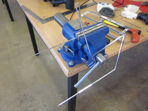 En este punto debe tener un montón de varilla extra. Sólo cortado en el lugar correcto y llamarlo bueno.