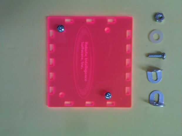 1. Recoger la cubierta superior de control del Robot Android del paso 1, 2 del 1/2 Zinc-Plated abrazaderas de las esquinas, la arandela de 1 nylon, 1 tornillo, cabeza de la cacerola, PPN6-32 x 1/2 y 1 #6-32 tuerca de maleficio