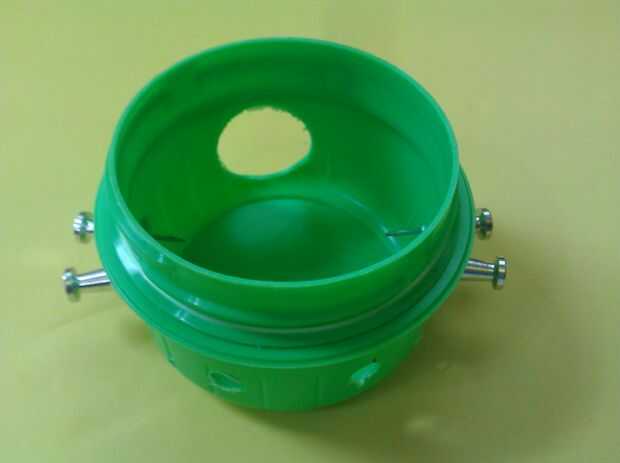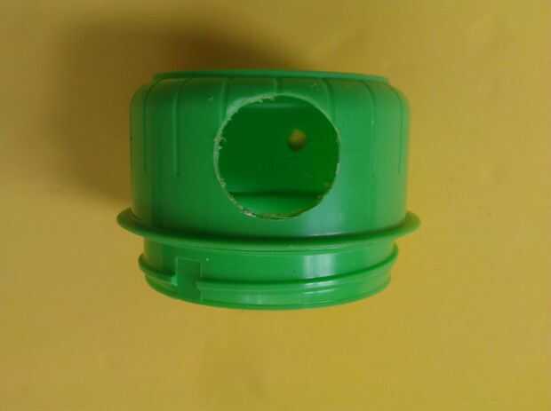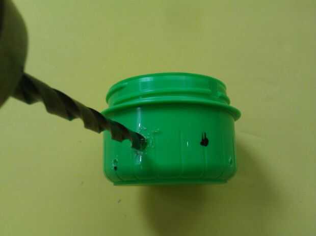 3. Utilizar la Sierra de hoyo de 1/2" para perforar un agujero en la parte posterior de la tapa de detergente de lavandería