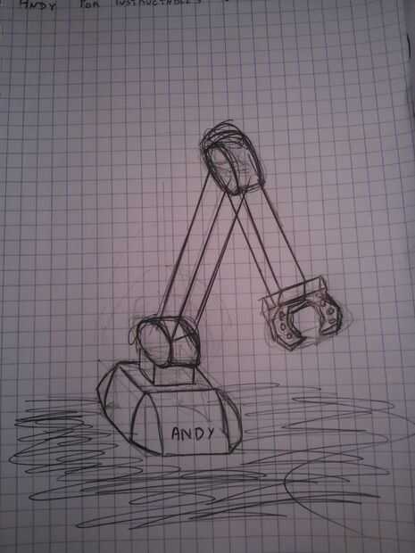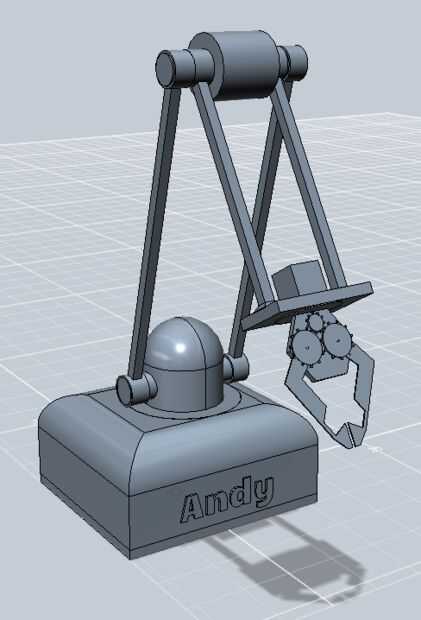 Andy tiene una base giratoria, dos combinaciones que se pueden girar independientemente (piensa en ellos como de humanos hombro y codo), y una garra que se puede girar, abierto y cerrado más o menos fuertemente como sea necesario.