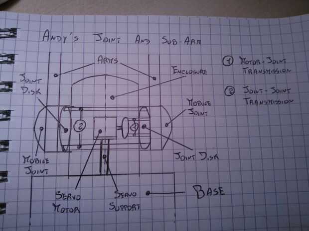 Como dije antes, Andy tiene dos articulaciones que actúan como de humanos hombro y codo. Estas juntas están girando las piezas que sostienen el brazo y capaz de llegar a cualquier punto alrededor de él.