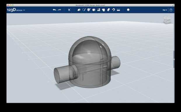 1) primera mitad del recinto: crear un cilindro de radio 4.20 y altura 4.30. Poner en él una esfera del mismo radio. Usando el Sketch > rectángulo y Modificar > extrusión > restar corte por la mitad. Entonces, con la Sketch > Offset de la herramienta, vacía el cuerpo dejando un margen de 0,70.