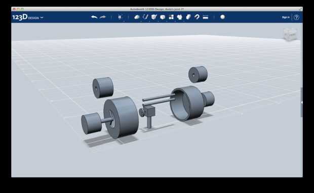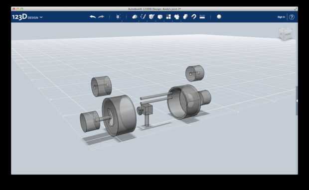 4) crear dos cilindros de radio 0,2 y altura 6.10. Transmiten el movimiento del cuerpo 2 y 2bis del cuerpo, así que conectan a los cuerpos 1 y 2 a través de los orificios en forma de C.