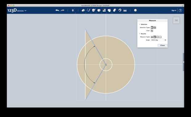 En la base sin tocar, con la herramienta Sketch , recrea el diseño como en la segunda foto. Dibuja un círculo con radio de 1.40. Usando el Sketch > polilínea herramienta, dibujar dos segmentos creando un ángulo de 120 grados (las líneas en azul). Ahora, seleccione cada superficie en la derecha de las líneas azules y hacer un agujero en la cara del cilindro.