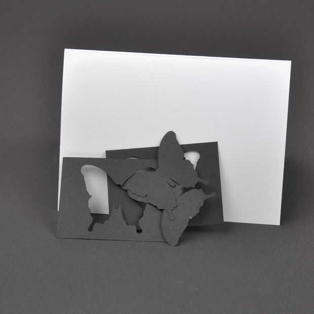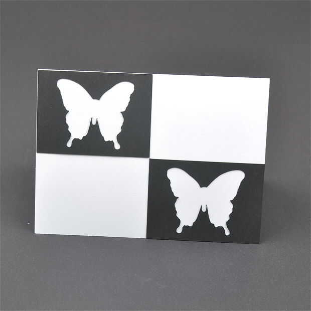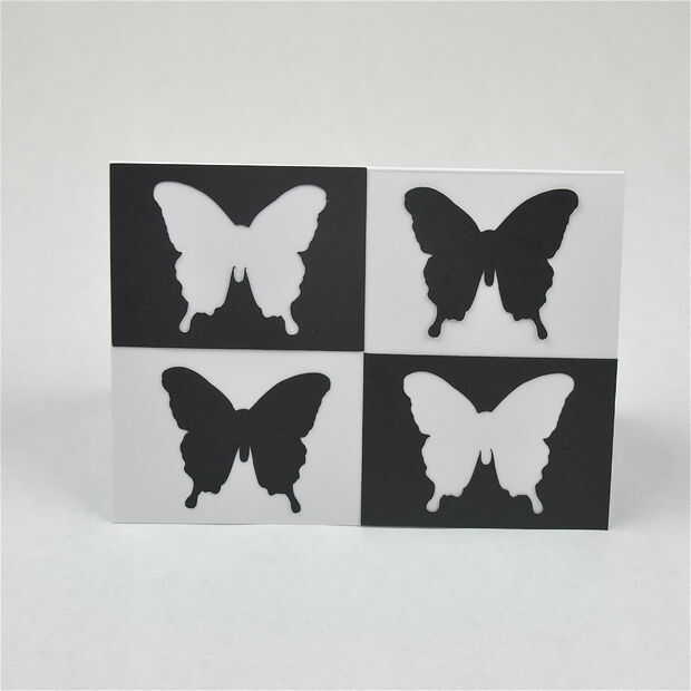 Tome todos sus cortes, su tarjeta en blanco y algún tipo de adhesivo. Tomar los rectángulos con el corte medio y pegamento en las esquinas diagonales. Sólo debe tocar la esquina inferior derecha de la tapa uno y la parte superior izquierda de la esquina de la parte inferior una. Ahora toma los recortes y pegarlos en las esquinas opuestas. Asegúrese de que el centro de los rectángulos blancos.