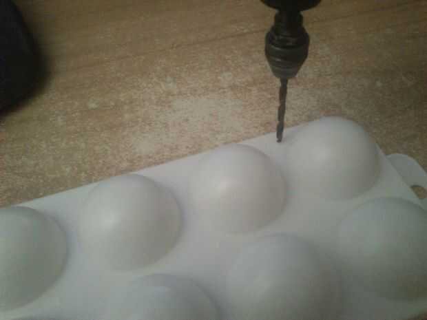 En primer lugar, vamos a taladro un poco del agujero alrededor de las copas un ajuste lejos el plástico innecesario pero no tirarla, porque más adelante lo usaremos para fundir y pegar las patas de plástico y tazas.