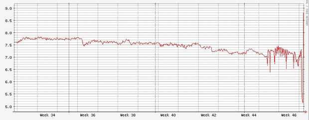 Queríamos una manera de decir si el aire fluía en nuestro centro de datos pero instrumentación de flujo de aire real puede ser caro. Manejadoras de aire que el aire muy rápido y un medidor de velocidad de viento simple se desmoronaría en cuestión de días. Hay algunas soluciones que son relativamente baratos y trabajarían para nuestras necesidades pero que no integran fácilmente en nuestra casa actual construido solución de seguimiento. Esta es mi solución algo cursi pero trabajo.