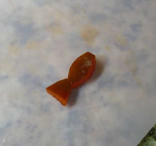 Corte el pimiento rojo en forma de pequeños peces. Los peces deben ser proporcionales en tamaño a las tazas de fille.