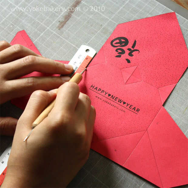 Ang Pao (Chino rojo envolvente) en forma de corazón (3 / 10 paso)