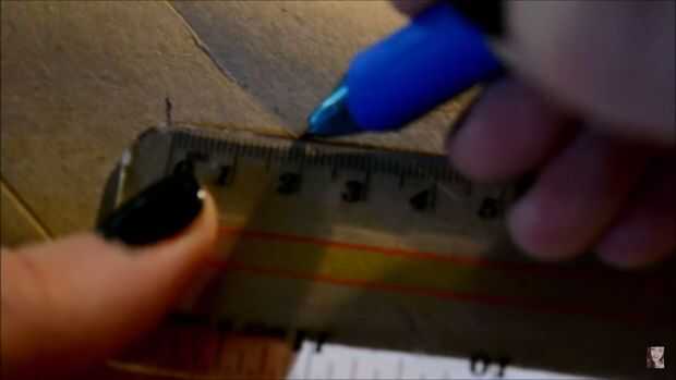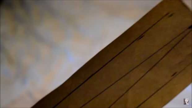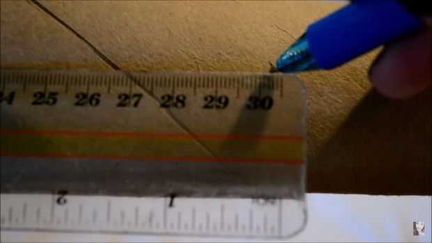 Otra vez, hace referencia a la plantilla de la marca la medida de la hoja. La plantilla dice 32 cm, así que tuve que marcar 30 y luego 2 para obtener una medida exacta.