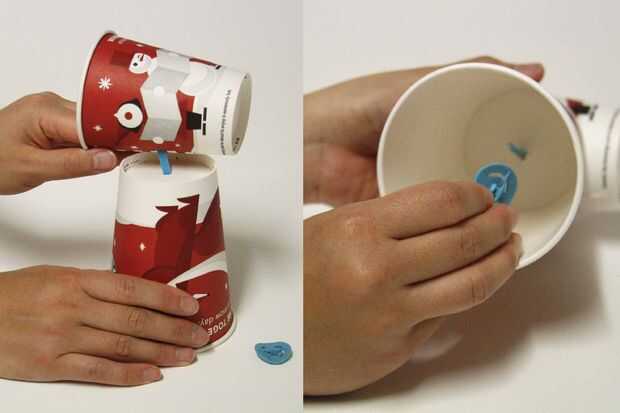 Conectar la Copa más pequeña a su lado a la parte superior de la taza de café más grande usando un pin de Makedo y clip.