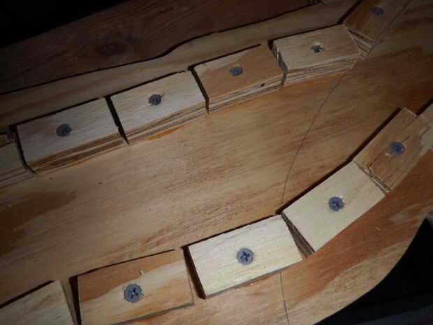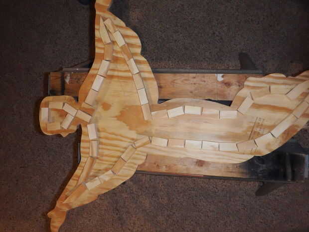 Ahora quieres poner las piezas boca abajo y comienzan a colocar las piezas de 1 "x 2" en la parte posterior de las formas. Tratar de mantener el bloqueo alrededor 1-1/2" del borde de la pieza para ocultar las luces cuando están instaladas. Colocar todas las piezas antes de apretar para permitir el ajuste. Opté por pegar y atornillar cada pieza en su lugar para darles mayor resistencia.