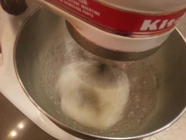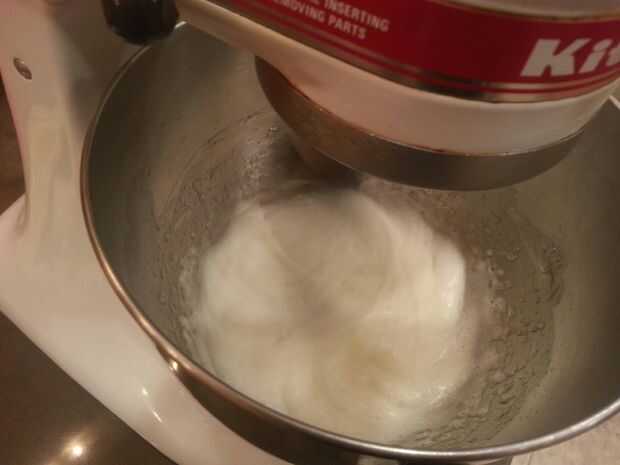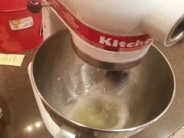 Usando su soporte mezclador *, comienzo los huevos blancos un whippin'!