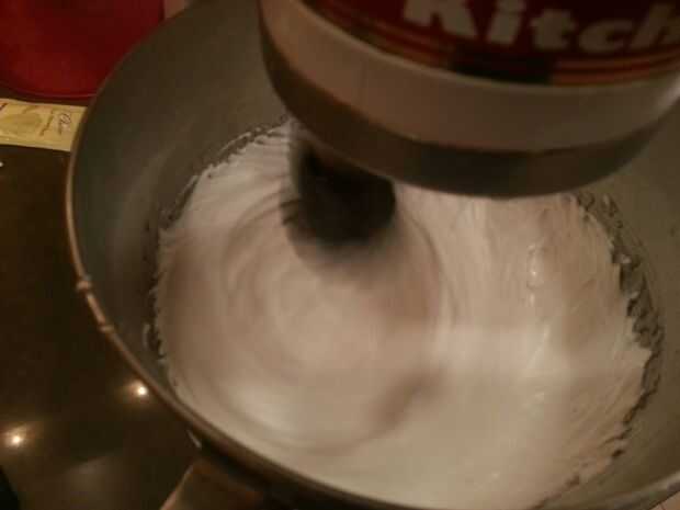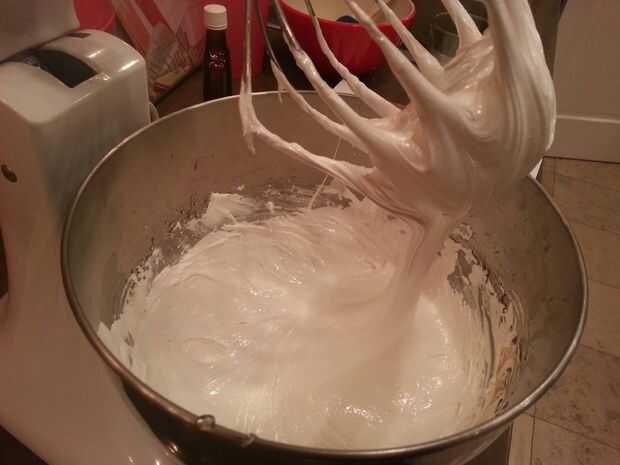 La mezcla de azúcar se agrega a los huevos nata montados, una vez su mezclador hasta alta durante 5 minutos.