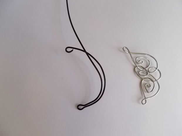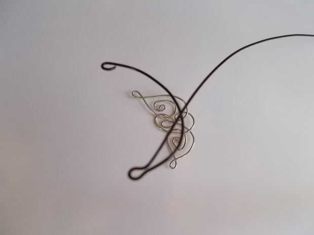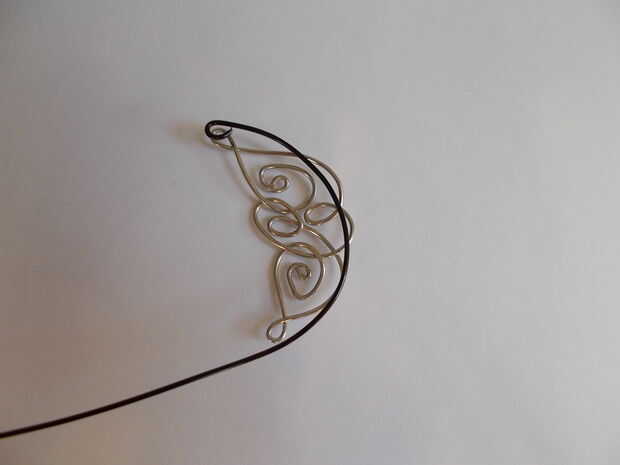 Comenzar agarrando el cable negro grueso y usando su ala del ángel o el dibujo del ala del demonio como una guía para dar forma a los lazos superior e inferior.
