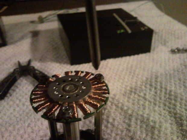 motor, perfore un pequeño agujero en la parte posterior del motor para permitir que 2 cables.