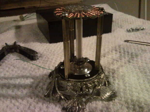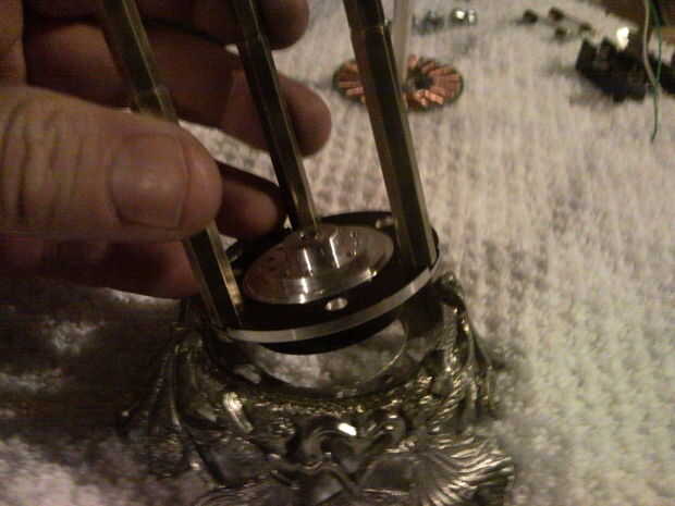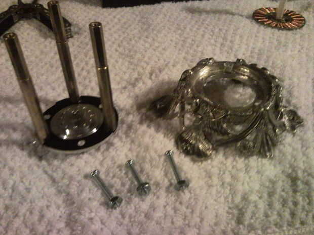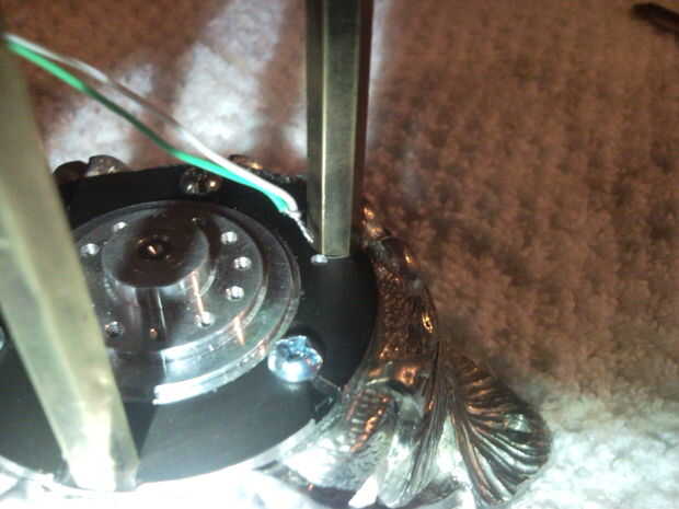 Perfore agujeros de 3 en el motor de disco duro y la base para sujetar el cuerpo de luz principal a la base.
