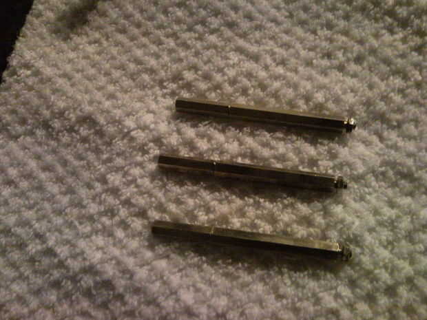Hacer tres 3" latón postes de madera de los postes de madera y fijarlos en el disco duro