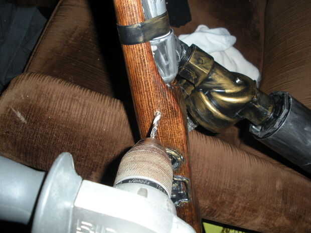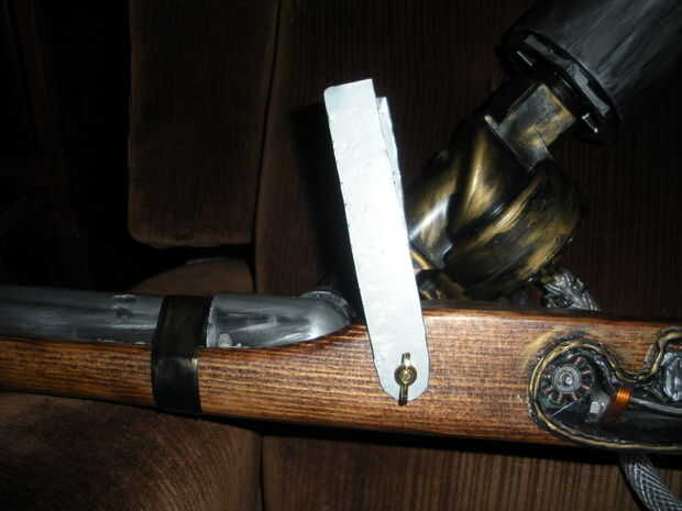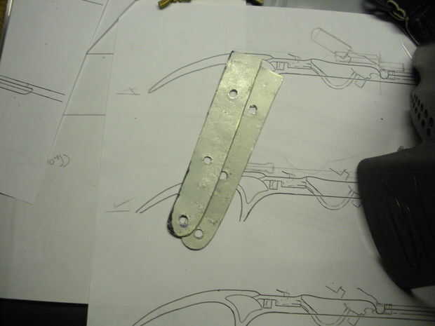 Tomar el pedacito de taladro usado antes y perfore un agujero en la culata de su rifle donde quieres que los soportes para ir. Poner una varilla por el agujero y poner las arandelas en los extremos. Coloque los soportes en el vástago y luego otra arandela. Gire los soportes hasta la posición que desee y apriete las tuercas de mariposa para mantenerlos constantes.
