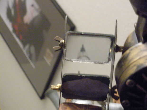Ahora ajustar el montaje del espejo hasta el rayo láser quede justo por encima de la vista. Ángulos son importantes así que mantenga la cabeza donde será fotografiar!