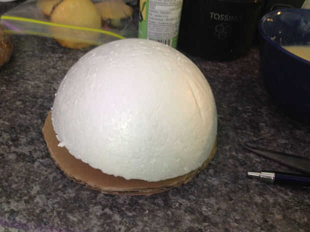 Cortar la espuma de poliestireno en media ronda. Consideran "usa esto" escribiendo en el cuadro (era para otro proyecto).