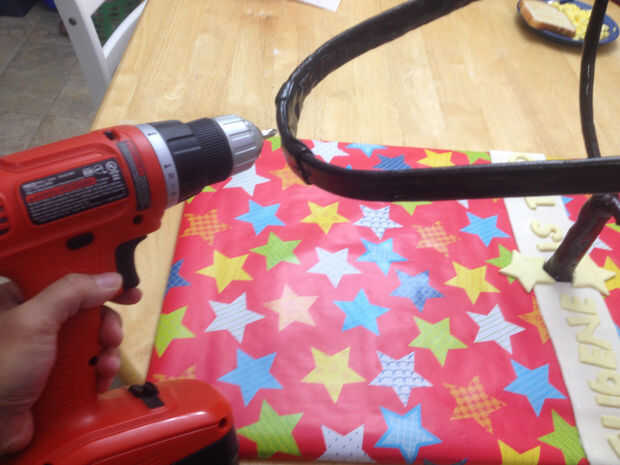 Ahora usando el taladro eléctrico, fije la torta a la Honda con un par de tornillos, en la parte de espuma de poliestireno