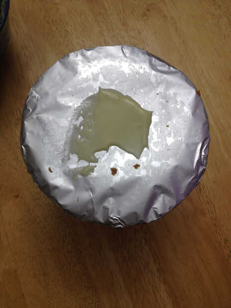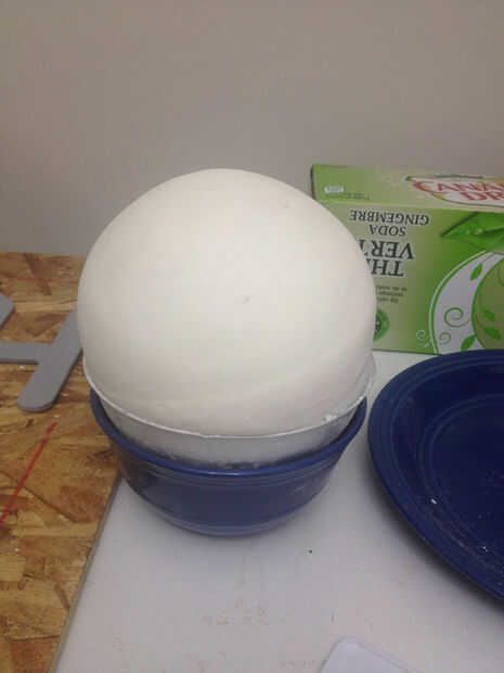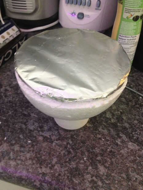 Para que sea más fácil para usted trabajar en el pastel, coloque la espuma de poliestireno en un cuenco o una taza