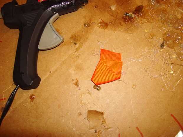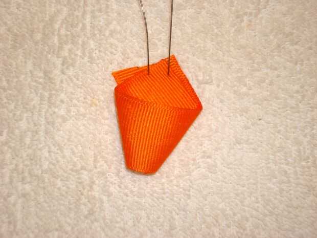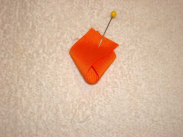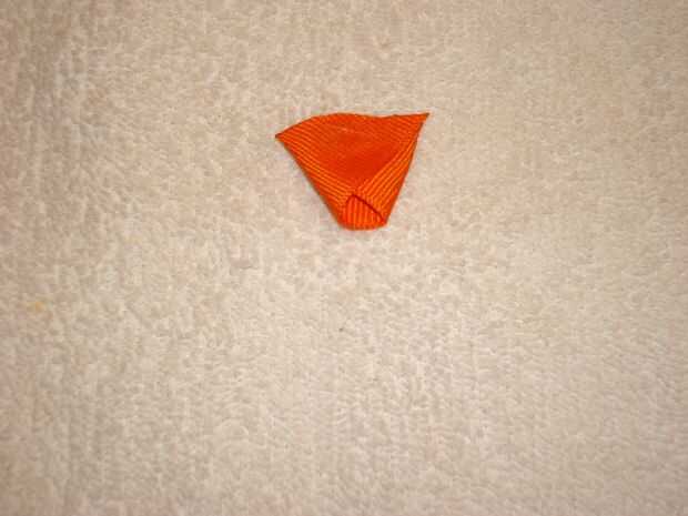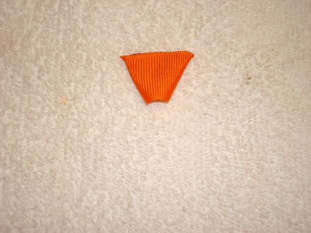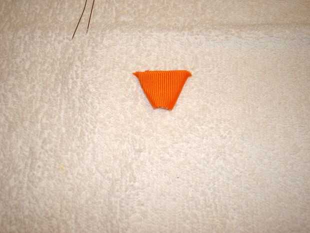 Doblar el pico como se muestra en un principio de ángulo en el lado derecho. Doblar el lado izquierdo como se muestra. Fije con un alfiler de costura. Dé vuelta. Doblar el pico y presiona a la forma del pico. Pegamento. Corte el exceso. Presione el pico otra vez para mantener la forma.