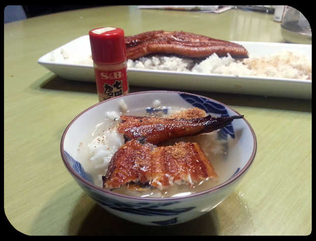 Unagi, o anguila japonesa en barbacoa, es una de mis comidas favoritas. Ya sea en, o sobre, un sushi roll, en un bento, o servido como este - Hitsumabushi, el sabor de la barbacoa, pescado blando, y piel crujiente son una delicia triple.