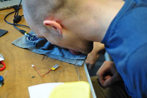 Antes de ir a través de todos los problemas de cinchas en, asegúrese de que realmente funciona. La lengua es una sonda decente en este caso. Lamer cada una de estas almohadillas mientras que va el lilypad y debe ser capaces de sentir el pulso encender y apagar como un pequeño cosquilleo excitante. Si todo está en orden, entonces vamos a empaquetar esto un poco.