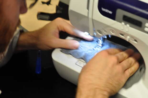 Lleve su dispositivo la máquina de coser con el "interior". Debe tener una bobina de hilo conductor en la parte inferior de la máquina de coser. (Creo que esto sería más fácil si el hilo conductor era en la parte superior en realidad, pero todo mi hilo conductor es demasiado gruesa para utilizar para arriba allí, alguien tiene consejos sobre esto?)