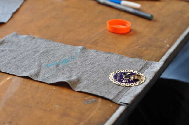 Coloque su lilypad de la base y círculo con un rotulador de tela. Asegúrese de poner puntos también donde van los pines que va a utilizar.