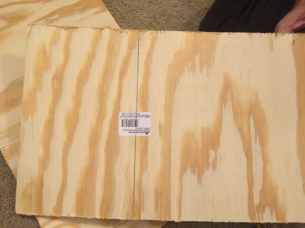 Cortar la madera contrachapada en 4 secciones de igual longitud (ft 1 para cada sección) a lo largo del lado más largo de la madera.