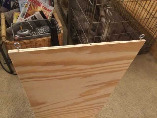 Será el primer lugar en el medio pedazo de madera que el lanzador está montado sobre. Los ganchos de ojo deben montarse en las esquinas que son el más lejano lejos del artilugio (uso foto 1 como guía).