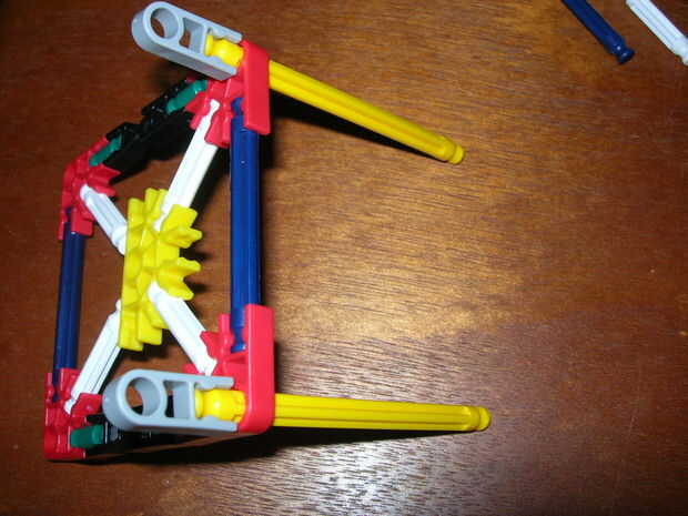 Añadir los dos conectores amarillos que hiciste en el comienzo a las esquinas rojo a través del orificio en los conectores de esquina roja