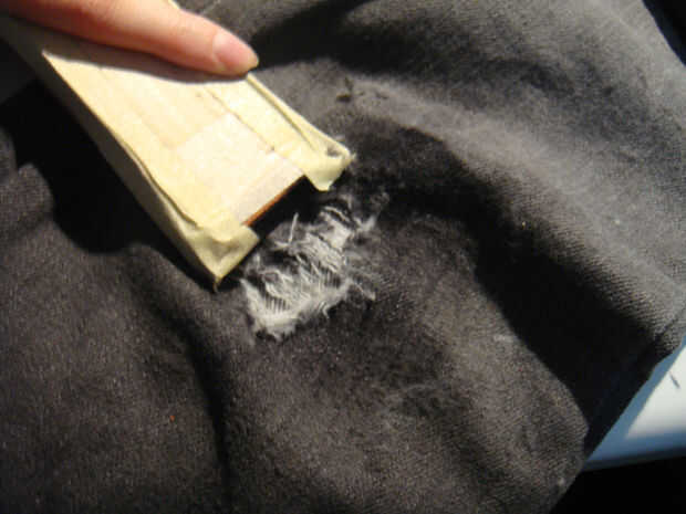 a medida que continúe la tela de la arena, que avisos de que las fibras se rompen apartes. Se trata realmente de preferencia y puedes dejar cuando quieras. Cuanto más usted la arena, se romperán los hilos más y el agujero más grande tienes.