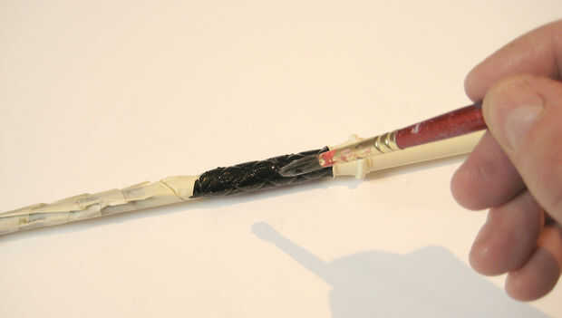 El arte de la angustiosa (y es un arte) es crear una capa de credibilidad, o capas, de lo que parece tierra relacionados con la edad y todavía dejar ciertas zonas limpiamos y pulidos como si el dispositivo se ha utilizado durante años y ha construido esa pátina antigua encantador de edad. Creo que antes de empezar... donde construiría la suciedad, donde habría menos polvo, pedacitos de lo que serían ser pulido con la edad. En estos momentos estás viendo cómo angustia la varita Kymera, pero usted podrían hacer esto a un X-Box, o un controlador de Wii, o un control remoto viejo (lo guay tener un marfil viejo de aquellos), así que pensar en cómo la usas y donde la suciedad se debe y no debe ir.
