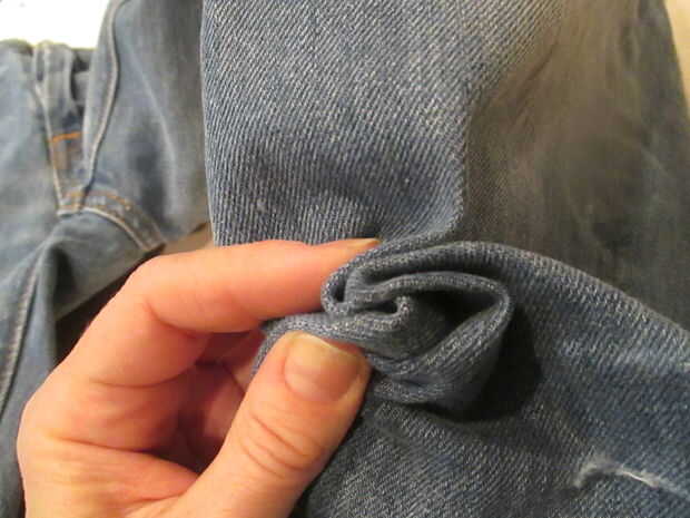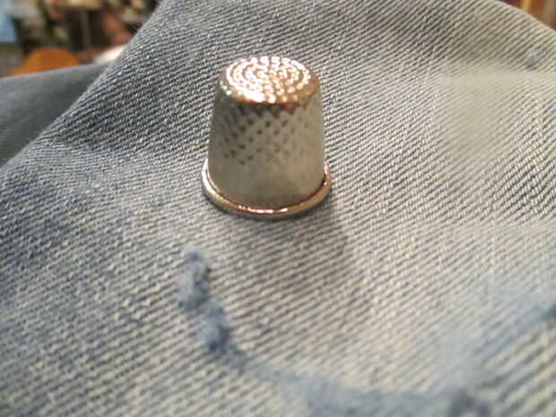 Usé un dedal cuando se trabaja desde el interior de los pantalones vaqueros.