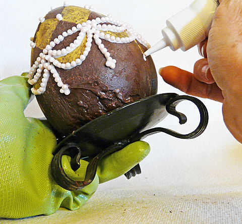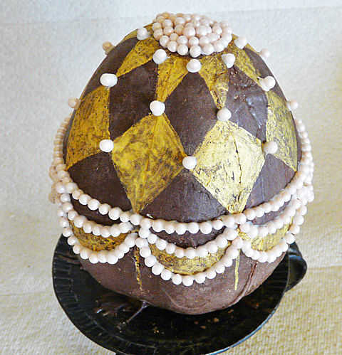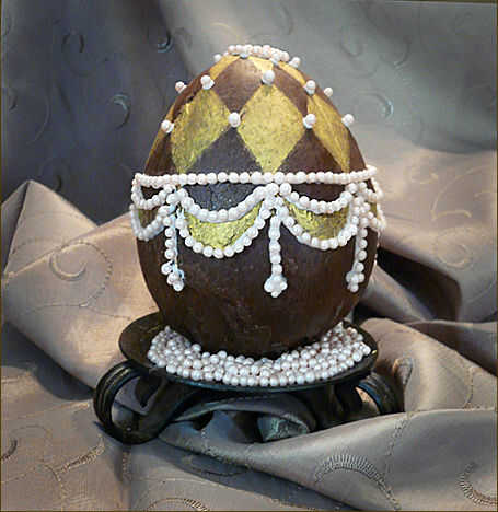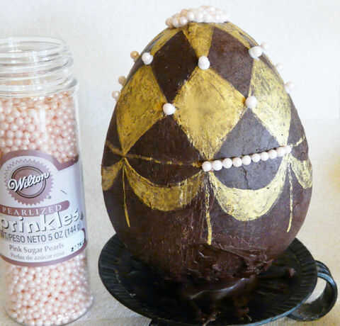 Trabajando en una pequeña sección en un momento, trazar líneas sobre el huevo de chocolate con el escritor de la formación de hielo. Esto evitará que la guinda seque antes de tener una oportunidad para decoraciones en él.