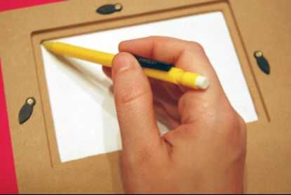 3. corte alrededor de la otra foto. Colocar la cara de marco de foto en la parte posterior de esta foto. Alinee el marco para ajustar exactamente la imagen y trazar alrededor de la abertura del marco de la parte posterior. Cuidadosamente corte este cuadro en la foto.