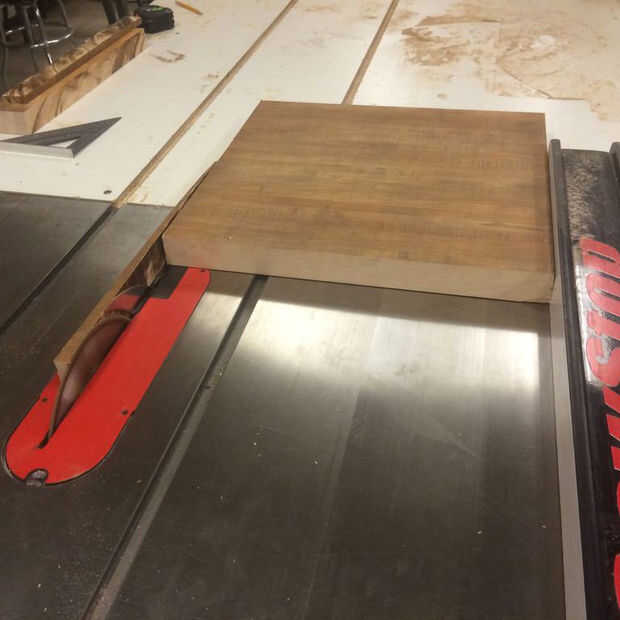 Corté la primera mesa con una sierra circular de mano y el segundo en la tabla VI. La Sierra de mesa era en definitiva una instalación más fácil y más precisa. Ambos dejaron marcas de quemaduras que limpió con unos pases en la ensambladora y algunos lijado.