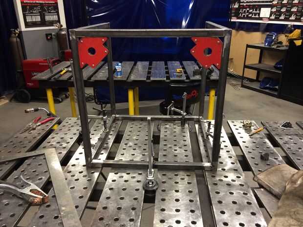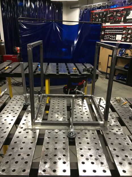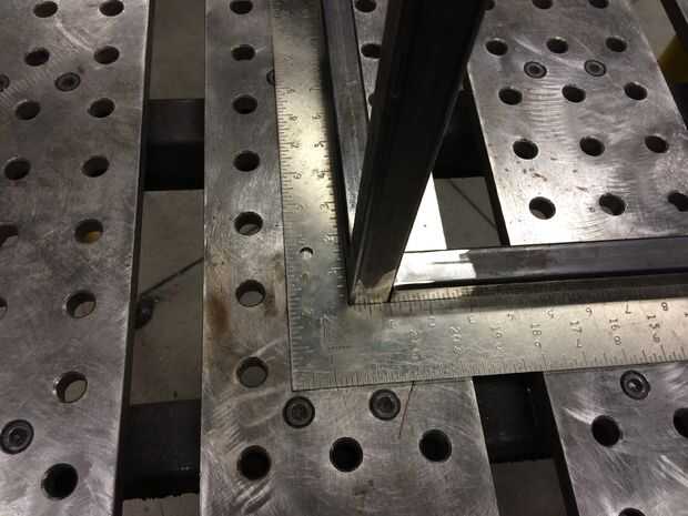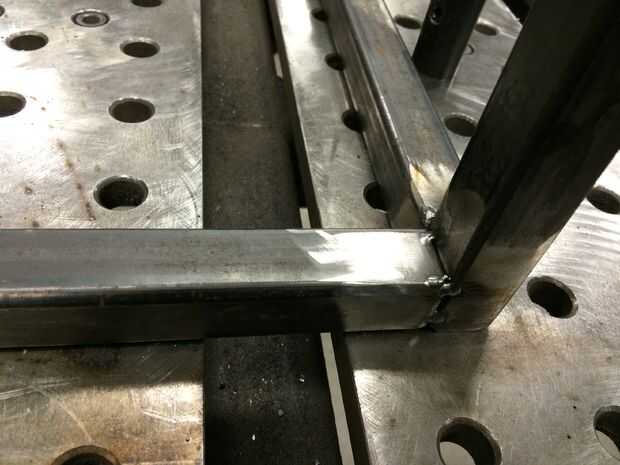 Al igual que cuando soldó con autógena los lados, empecé a soldadura a la base de todo por arreglar las piezas y apriete hacia abajo. Usé algunos imanes de flecha a la Cruz del tubo que yo no podía sujetarse a la tabla de posiciones. Otra vez, he soldado todo, luego volvió y completado mi soldaduras.