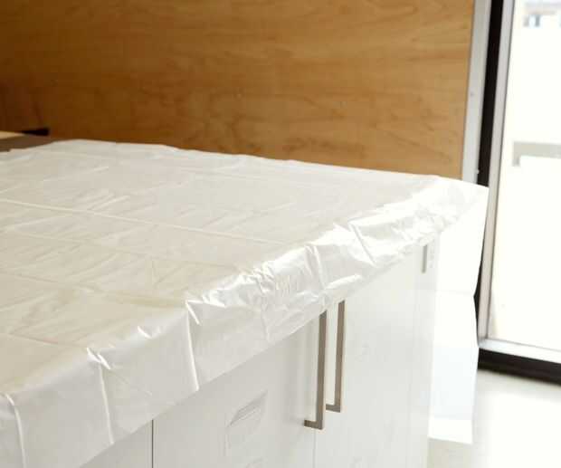 Usando el paño de recogida plástico, cubren todas las superficies de trabajo.