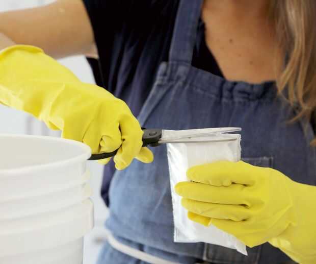1. Coloque el cubo en la superficie de trabajo protegida.