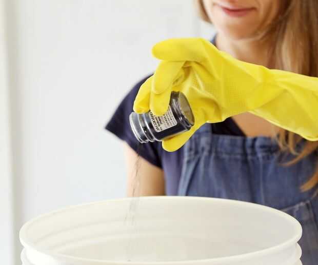 2. Vaciar el recipiente de tinte del añil en el agua y revuelva.