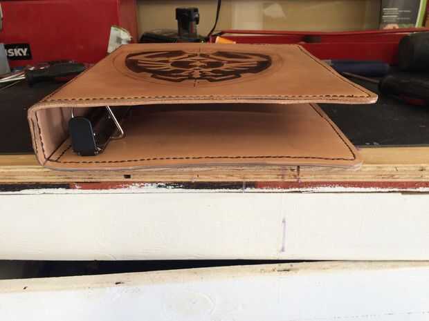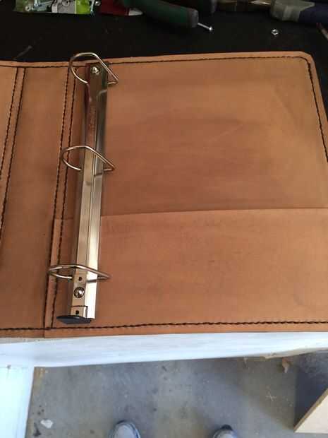 El último paso era añadir el mecanismo de carpeta de tres anillos. Compré una calidad resistente carpeta desde una fuente de la oficina almacén y a taladrar los remaches. Marcado los hoyos a perforar en mi carpeta. Temporalmente usé algunos niquelado pernos y tuercas para sujetar el mecanismo por ahora. Estoy esperando el tipo correcto de tubo remaches a modo puedo clavar permanentemente el mecanismo en la carpeta.