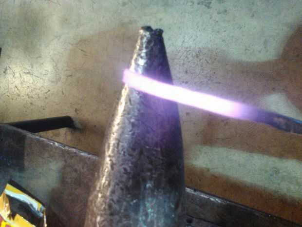 Primero, empieza por tomar su acero y corte sobre una longitud de Ft 1, muchas de ellas no se utilizará, está allí para aferrarse y no quemarse. A continuación, encender la antorcha y comenzar a calentar el extremo del metal hasta que brilla intensamente rojo. Bajar alrededor de tres pulgadas, calentando el metal. (Si tienes un forraje y sabes cómo calentar y martillo de metal, ignorar esta explicación) Después de eso, vaya a su yunque y aplanar hacia fuera el acero manteniendo uniforme en ancho. Martillo para aproximadamente la mitad que era antes. Entonces tome su metal a la bocina del yunque (la espiga redonda buscando luego en un extremo) ir aproximadamente una pulgada de la punta y comenzó a martillo el metal alrededor de él con dijo martillo. Usted puede necesitar volver y repetidamente re calor su metal.